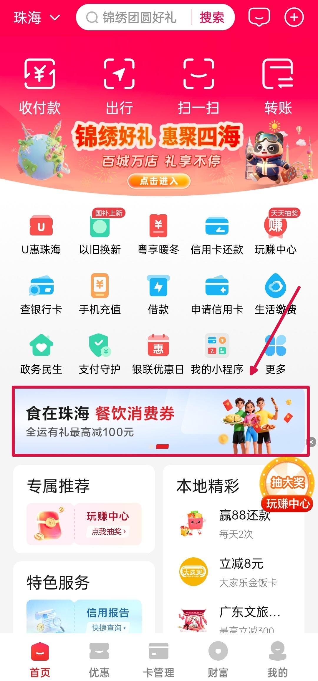 1️⃣ 打开“云闪付”App,定位至珠海市;